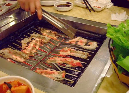 肥牛肉是燒烤中的上品,是指帶有明顯白肉(脂肪)的牛肉,高檔一點(diǎn)的燒烤店會將肥牛肉分為S外脊、A外脊、A眼肉、三岔肉和帶骨腹肉等,絕大多數(shù)西餐廳的烤牛排則多用各種外脊!吧夏X”位于短腦后邊,脊骨兩側(cè),外層紅白相間,韌性較強(qiáng),里層色紅如里脊,質(zhì)地較嫩,脂肪交雜均勻,有明顯花紋;“眼肉”切片后呈現(xiàn)酷似眼睛的花紋,眼內(nèi)脂肪交雜呈大理石花紋;“外脊”紅白分明,細(xì)嫩肌肉有明顯油邊,腹肉則脂肪豐富,油香味濃。