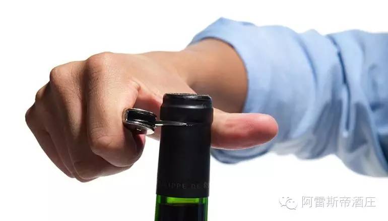 那么,在開瓶時(shí),封瓶錫帽該如何去除呢?或許大家各有各的辦法,但為了讓這個(gè)過程顯得優(yōu)雅,還是有必要簡單學(xué)習(xí)下相關(guān)的禮儀。在開瓶的時(shí)候,用海馬開瓶器上附帶的小刀沿防漏圈(瓶口凸出的圓圈狀的部位)下方劃一圈就可以把錫帽撕開了。最好不要在防漏圈上方割開瓶封,因?yàn)槿绻菢拥脑,倒酒時(shí)酒液有可能會(huì)沾到瓶封切口,影響酒的味道。