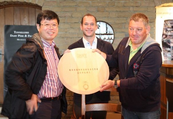 結束了在羅宏酒莊的考察后,一行人來到當?shù)刈畲蟮南鹉就肮S,Barrel Maker Damy Billon,參觀了橡木桶制作流程,并深入了解了橡木桶在葡萄酒生產過程中起到的重要作用。為表示對中國客人的歡迎,工廠專門制作了紀念品贈送給大家。