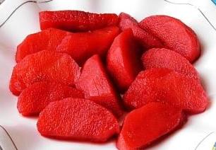 紅酒雪梨是西餐中一道有名的甜品,既可以滋陰潤(rùn)肺、去痰止咳,又有促進(jìn)血液循環(huán)、美容養(yǎng)顏的功效。這道美食具有清火、去燥、安神、補(bǔ)血等功效,是一款不錯(cuò)的甜品。原料:紅酒700ml、水晶梨一個(gè)、冰糖適量、肉桂粉少許或桂皮一塊、檸檬半個(gè)做法:1、水晶梨去皮去核對(duì)半切開,放入泡有檸檬的清水中防止變色;2、紅酒倒入鍋中,放入冰糖、肉桂粉,煮至冰糖溶化;3、放入水晶梨,中小火煮至紅酒翻滾,小火繼續(xù)煮一個(gè)小時(shí);4、放入冰箱中冷藏幾個(gè)小時(shí)再食用口感更佳。
