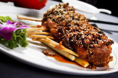 (3)青蘆筍一支煮熟,待涼備用橄欖油熱鍋煎羊肋排,加入紅酒,然後以中火煎3分鐘,烤箱預(yù)熱,將煎五分熟的羊肋排送進220°C的烤箱烤15~20分鐘,利用煎羊肋排的油鍋加熱腌醬,以中火收干汁液,使其濃稠,取出羊肋排,將通心粉與清蘆筍置於盤緣并淋上醬汁與辣椒粉即可食用。
