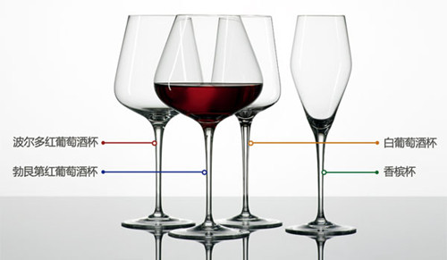 波爾多葡萄酒杯:杯身較長,杯口較窄,此杯形可令酒的氣味聚集于杯口。除了勃艮第紅葡萄酒以外,波爾多葡萄酒杯也適用于其它很多紅葡萄酒,因為大部分的葡萄酒都是根據(jù)波爾多的風(fēng)格去制作的。