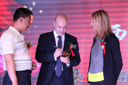 豪龍酒莊莊主卡梅隆先生為嘉賓簽名留念,并與大家一起表演了節(jié)目,現場氣氛熱烈而活躍。(文/楊秀紅)