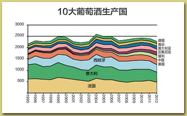 歐洲的法國(guó)、意大利和西班牙始終占據(jù)著全球葡萄酒最大生產(chǎn)國(guó)的王者地位,在2012年釀造出大約15億升的葡萄酒。但是在2011-2012年,它們的葡萄酒輸出量減少了9.5%。作為世界上最大的葡萄酒生產(chǎn)國(guó),法國(guó)遭受了18%的下降率。