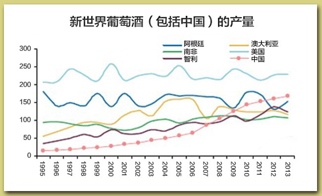 在新世界的葡萄酒生產(chǎn)國(guó)中,中國(guó)僅排在美國(guó)的后面。中國(guó)從90年代中期開始,就出現(xiàn)了一個(gè)飛速地增長(zhǎng),去年生產(chǎn)了1.5億升的葡萄酒。