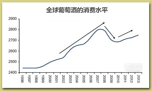 全球的經(jīng)濟(jì)蕭條使得葡萄酒的消費(fèi)水平下降了,但是在此之后,又呈現(xiàn)了一個(gè)回升的狀態(tài),在危機(jī)高峰期又出現(xiàn)了一個(gè)迅速的回升。