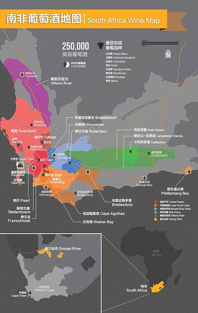 除了以上四種白葡萄品種,南非還種植有賽美蓉(Semillon)、雷司令(Riesling)和維歐尼等,大多被用來混釀或調(diào)配,不過現(xiàn)在要找到這些單一葡萄品種葡萄酒也并非難事。