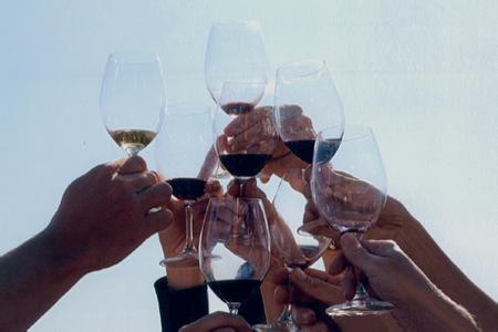 喝葡萄酒干杯時,不應該像中國白酒那樣豪爽地一飲而盡,而應該講究文雅和舒緩,但是至少要喝一口酒以示敬意。