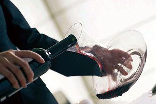 5、注意將瓶中最后有沉淀的酒液留在原瓶中,不要倒入醒酒器中,要確保醒酒器中無(wú)沉淀。