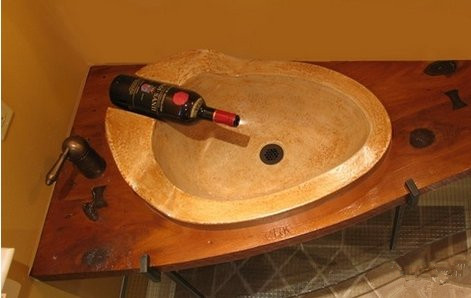 這個酒瓶被安裝在混凝土水槽上,竟然搖身一變成為一個水龍頭!這一獨具特色的小小改動,能否讓你在洗手臺前會心一笑呢?